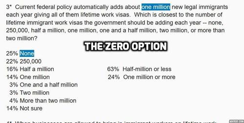 That debut poll didn’t provide context (i.e. didn’t give the current rate of legal immigration). Such context can be important, because—anecdotally, anyway—Americans are generally still astoundingly ignorant, or at least innumerate, about our immigration madness.