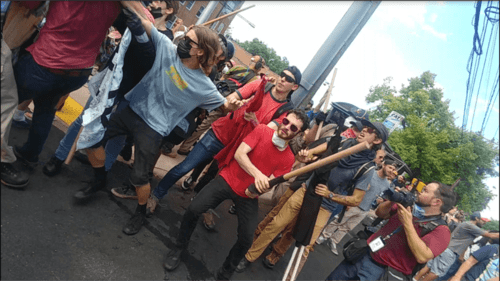 In planning for the event, three main risks were apparent: doxing, arrest for scuffling in self-defense, and physical assault. We even agreed in advance to take a punch or endure a fusillade of rocks and bottles to keep our noses clean and not appear as aggressors. Many of us packed helmets, goggles, gloves, and other equipment in case things went pear-shaped. But we did not wear them initially, in order to avoid the bad “optics” that hand-wringing critics constantly harp upon.