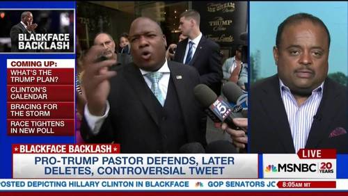 The media-manufactured "crisis" was that a Trump-supporting black minister, the Rev. Mark Burns, had retweeted a cartoon of Hillary in blackface. Blackface is how whites exploit black people, so evidently, the cartoonist was saying that Hillary exploits black people.
