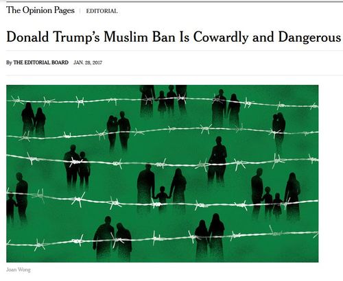 The New York Times wore out its thesaurus denouncing the order: "cruelty ... injury ... suffering ... bigoted, cowardly, self-defeating ... breathtaking ... inflammatory ... callousness and indifference"—and that's from a single editorial!