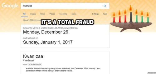 Kwanzaa bells, dashikis sellOnly white liberals take Kwanzaa seriously. American blacks celebrate Christmas.Whitey has to pay;
