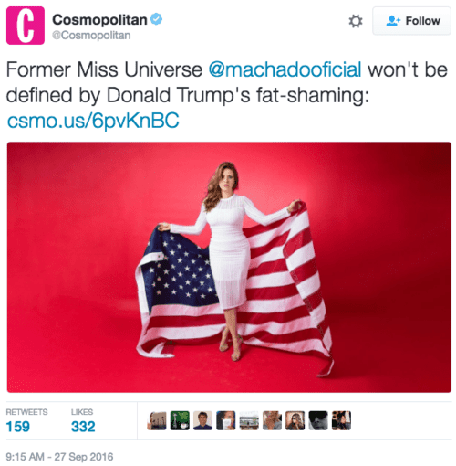 All that's already been priced into the Trump brand. What new results do the media expect from telling us that Trump not only insulted Rosie O'Donnell, but also insulted Hispanic Mattress Girl, Alicia Machado: baby mama to a Mexican drug lord?