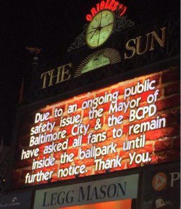 With such groups involved, it’s hardly surprising there was widespread violence. Hapless suburban whites attending the Baltimore Orioles game in the heavily gentrified area surrounding Camden Yards found themselves attacked by black protesters. Robberies, carjackings, and projectile weapons were involved in what one person called a “war zone” and pictures are all over social media of fans being attacked by blacks with knives [War Zone: Baltimore Erupts into Violence, Chaos as #BlackLivesMatter Riots Rage, by Matthew Boyle, Breitbart, April 25, 2015]. Fans reported that for a time, they were not even allowed to leave the stadium because of fears for their safety.