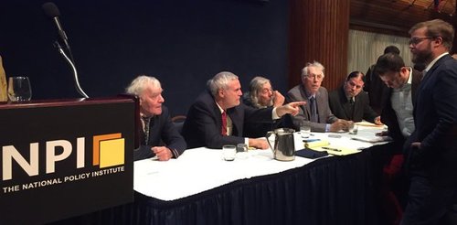 At the NPI gathering, on the theme “Become Who We Are,” no muzzles were placed on the speakers’ mouths in a way that Samantha and the increasingly repressive Main Stream Media want. But the most stimulating part of the experience for me was meeting dignitaries whom I’ve been reading for decades, e.g. MacDonald, whom I had previously known only through his writings and very occasional email messages; and the fiery French critic of Muslim immigration and (along with Alain de Benoist) a Grey Eminence of the French New Right, Guillaume Faye.