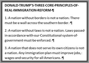 But what's happened is that it's just become more difficult to express these ideas, they've become more “toxic,” as the Left says now—despite the fact, or in fact because of the fact, that Americans have elected an insurrectionary president in the form of Donald Trump, whose position paper [PDF] on immigration on August 15, 2015 was perfect. We regard it as perfect statement— it said all the things, including opposing Birthright Citizenship, which we've been saying for nearly 20 years.