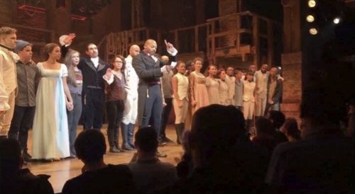 Well, anyway, Pence was booed repeatedly by the audience and at the end the cast got up and read a statement denouncing him and denouncing Trump. They said: