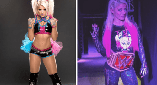 Below, Alexa Bliss as she appears in (a) the US and (B) Saudi Arabia.