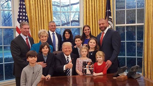 [WWE Hall of Fame 2013: Reaction, Analysis and Review, By Mike Chiari, BleacherReport, April 7, 2013]Trump returned the honor by hosting the McMahons at the Oval Office when WWE co-founder Linda McMahon was being sworn in. [Vince, Stephanie & Shane McMahon Take Photo With President Trump in the Oval Office,Heavy.com, Feb 15, 2017]. The WWE’s stock is booming and Vince McMahon is even bringing back the XFL, his football league [Here's Why WWE Stock Is Soaring, by Wayne Duggan, USNews.com, January 26, 2018].