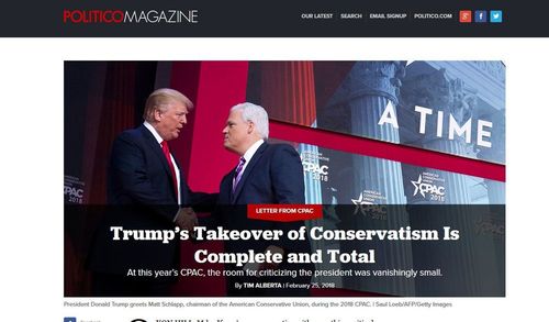 But the supposed “nationalist takeover” of the Conservative Movement may be overstated in triumphalist articles from outlets such as Breitbart [Mainstream Media: Trump Victorious At CPAC, Economic Nationalist ‘Takeover of Conservatism Is Complete,’ by John Binder, February 25, 2018]