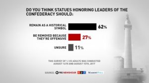 Above all, President Trump, in his uncanny intuitive way, struck back decisively in his Tuesday press conference by calling out the violent Communist Alt Left, and the campaign against Confederate statues (“who’s next, Washington Jefferson? So foolish”). Significantly, polls now show massive public support for this last position, something impossible to guess from the MSM coverage (or the Congressional GOP panic).