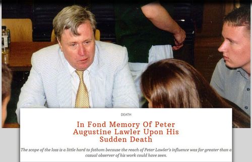 Lawler’s passing set off an explosion of praise in the authorized “conservative” press. National Review devoted a glowing eulogy to Lawler [Peter Lawler, RIP, by Peter Spiliakos May 23, 2017] The Federalist and Weekly Standard spoke about him even more extravagantly. [In Fond Memory Of Peter Augustine Lawler Upon His Sudden Death, By Yuval Levin, Federalist, May 24, 2017] And there were many others.