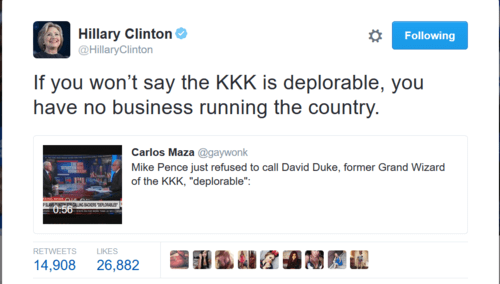 If you won’t say the KKK is deplorable, you have no business running the country. https://t.co/mFut8Qrz9A