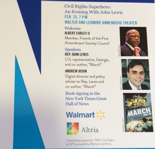 Lewis spoke at the Washington DC Newseum about his experiences in the Civil Rights Movement [Civil Rights Superhero: An Evening With John Lewis and Andrew Aydin, Newseum, February 25, 2015]. He delivered a spellbinding stem-winder recounting his dangerous history in the struggle for equality for African-Americans. In the end, I believe that what Lewis and his comrades fought for was simply for America to adhere to the rule of law and adhere to the ideals in our founding documents.