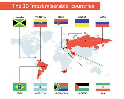 Here are Money Project's ten most miserable countries, listed from bottom to top—least to most miserable. But I’ve added mean national IQ, working here from Lynn and Meisenberg's 2010 figures. (They had an "X" for Jamaica, Lynn having declared it a lot of trouble to get good numbers for Jamaica. But Jason Malloy, using better data three years ago, came up with 80 for Jamaica.) [ HVGIQ: Jamaica, HumanVarieties.org, March 1, 2013]