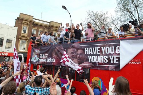 Dane Freeman said: "From being almost out of it in October to actually come at the top by a wide gap is just brilliant. It's almost like a fairy tale." [Thousands of fans cheer on Cobblers' champions as bus parade passes through Northampton; Northampton Chronicle & Echo, May 8th 2016.]