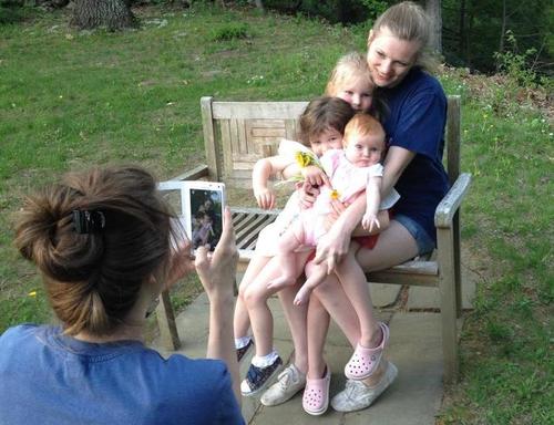Still, things can change unexpectedly for the better also. As a personal harbinger, I offer this recent snap of Lydia photographing Hannah Claire, 20 years old today, with her new half-sisters Felicity Deonne, Karia Sybil Nancy, and Victoria Beauregard.
