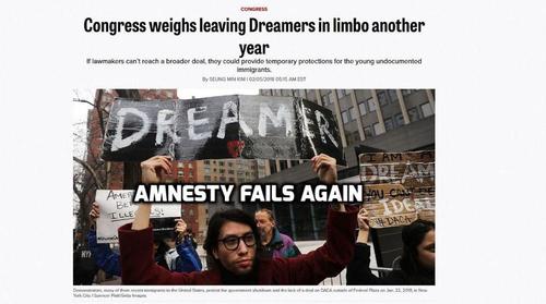 The third failed bill, championed by the Main Stream Media/ Opposition Party as “common sense immigration reform,” would have set aside $25 billion for the wall—but ditched Trump’s immigration reforms and given more than 1.8 million illegals permanent legalization. Considering how Trump’s most popular slogan is “build the wall,” not “end chain migration,” it looked like this bad compromise had a chance at bamboozling Republicans into signing onto it. But the White House strongly opposed it, and the Senate’s best chance at a DACA fix only earned 54 yes votes.