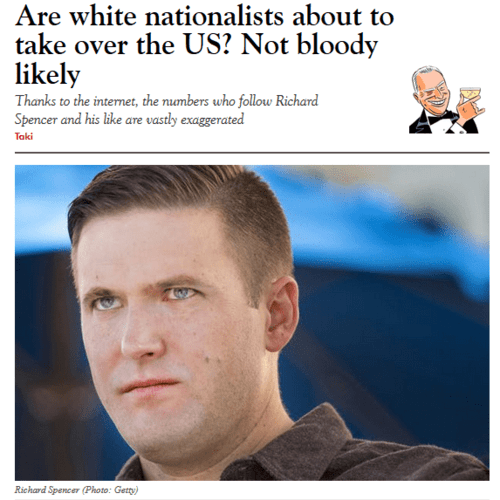Others strayed even further afield, such as Richard Spencer, who first popularized the term Alt-Right. In the meantime, owing to several recent publicity stunts, which have gained him some degree of notoriety in the US, Spencer has laid claim to the rank of the maximum leader of a supposedly mighty unified movement (an endeavor, by the way, that has been ridiculed by Taki Theodoracopulos, a veteran champion of the paleo-conservative-turned-Alt-Right movement and Spencer’s former employer).