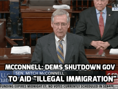 veterans, military families, and vulnerable children to hold the entire country hostage until we pass an immigration bill they have not even written yet... This is completely unfair and uncompassionate.It is quite a surprise, to put it mildly, to see the face of the GOP establishment deliver such effective talking points against the anti-American actions of the Democrats.Mitch McConnell: Democrats Shut Government to Aid ‘Illegal Immigration’, by Neil Munro, Breitbart, January 19, 2018