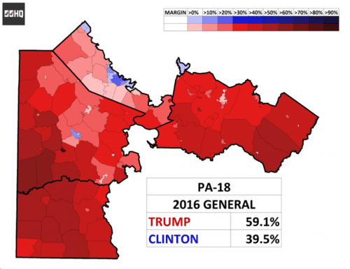 Lamb is an uncommon candidate in an even more uncommon district. 96% white and 84% urban, Pennsylvania’s 18th congressional district encompasses much of the southern suburbs of Pittsburgh, as well as the urban centers of Monroeville and Greensburg. PA-18 also cuts across largely rural Westmoreland and Washington counties, both of which are considered to be moderately populated Republican strongholds. Registered Democrats outweigh registered Republicans in PA-18 by roughly 70,000, however the district has been trending strongly Republican for the past few decades.