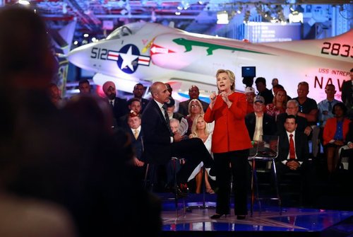 "Of the two candidates," The New York Times reported, "Mrs. Clinton faced by far the tougher and most probing questions from the moderator, Matt Lauer of NBC, and from an audience of military veterans about her use of private email, her vote authorizing the Iraq war, her hawkish foreign policy views..."[Forum Offers Preview of Hillary Clinton and Donald Trump Presidential Debate, By Patrick Healy, September 7, 2016 ]