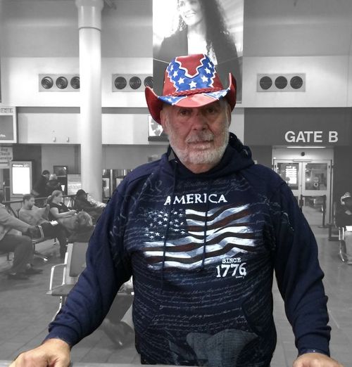 Greg Jones, adorned in a Confederate flag cowboy hat and American flag boots, says he was swayed by Trump’s promise to restore manufacturing jobs. After watching Trump get inaugurated, he hangs around at Union Station, hoping to strike up friendly debates with protesters. “They see my hat and tell me to go to hell,” he says. “Just come talk to me. Give me a damn chance. You’ll see I’m a nice guy, capable of engaging in a conversation.” Jones, from Daytona Beach, Florida, came to DC for the first time in his life to support Trump. “I used to work on trains as a factory worker,” he says, leaning up against a railing. “I’m a simple guy. I have a family to feed.” As hundreds of protesters marched by the seating area of the train, Jones said he’d been trying to talk with someone the whole time. Nobody had stopped for more than 30 seconds.