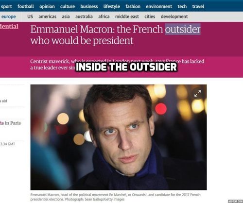 Sure, Marine Le Pen is an outsider, too. She's been around a while, though, while Macron was new, with a political party he'd invented himself out of whole cloth the year before. He was perceived as more the outsider.