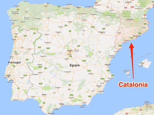 Catalonia, in the northeastern corner of Spain, is in the news.[Catalonia Government Declares Overwhelming Vote for Independence, by Raphael Minder, NYT, Oct 6, 2017] I was there once, back in my salad days, on my way to a camping vacation down the coast at a sleepy little whitewashed village named Oropesa del Mar, now all built up with tower blocks and tourist hotels.