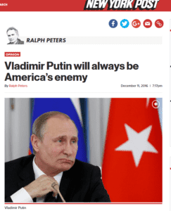 Not that we haven't tried. Here's Colonel Ralph Peters, in a New York Post column published December 11th. [Vladimir Putin will always be America’s enemy]