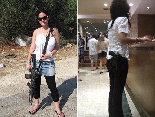 If you go looking for high-school shoot-'em-ups worldwide, far as I can see you come up totally dry, notwithstanding the fact that plenty of nations have more open attitudes to private gun ownership than we do —Switzerland and Israel, to name two. (See Democrat: “The State Ought to Have a Monopoly on Legitimate Violence” » Swiss girls with guns, The Patriot Perspective, December 22, 2012 and How common is it for Jewish women in Israel to carry military grade rifles as fashion accessories?, Quora.com, August 24, 2014, and the photographs at right.)