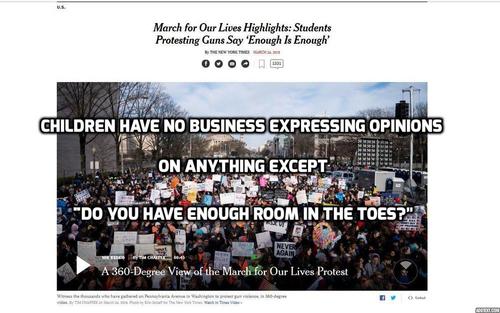 And to judge by Main Stream Media accounts, children were certainly to the fore. By those accounts this was in fact an uprising by the nation's youth against an entrenched gun-loving establishment of evil old white men.