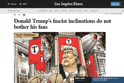 Well, the latest manifestation of Godwin's Law showed up this week in—would you believe it?—The New York Times. This was an Op-Ed column by Roger Cohen[Email him] in the December 14th edition of the Gray Lady. Title of the column: Trump's Weimar America.