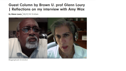 So, here's my bottom line: I believe that Dean Ruger's actions against Amy Wax at Penn Law—responding to public pressure no less—were reprehensible, and deserve to be condemned.So there's my trinity of IWSBs: Riley, McWhorter, and Loury. Why am I telling you about them, other than (you may reasonably suspect) to do a spot of sly virtue signaling? Because I just noticed a book they published last year, that's why.Guest Column by Brown U. prof Glenn Loury | Reflections on my interview with Amy Wax, The Daily Pennsylvanian, March 27, 2018