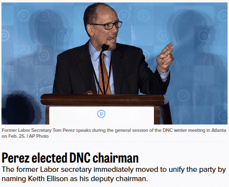 After Perez won the contest, he named Ellison his deputy chairman. [ Perez elected DNC chairman, by Gabriel Debenedetti, Politico, February 25, 2017] If you want to read that as another big step by the Democrats to make it clear to everyone that they are the anti-white party, I won't try to dissuade you.
