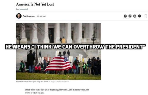 I’m ending this year with a feeling of hope, because tens of millions of Americans have risen to the occasion. The U.S. may yet become another Turkey or Hungary — a state that preserves the forms of democracy but has become an authoritarian regime in practice. But it won’t happen as easily or as quickly as many of us had feared.Krugman, and the Opposition Party generally, have it backwards. What actually emerged in 2017 was an American Totalitarian Left, uniting Democrat elected officials, their Main Stream Media academic and corporate auxiliaries, and their paramilitary Antifa wing. It is Trump, and his objective allies in the Dissident Right, who constitute the democratic resistance.