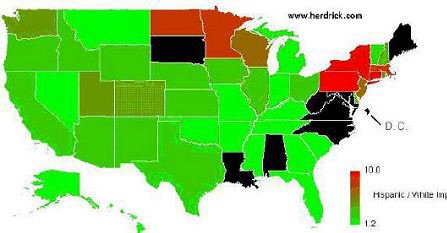 The Hispanic to white ratio is over 4 to 1 in Western states with law-abiding whites, like Colorado, Utah, and Washington.
