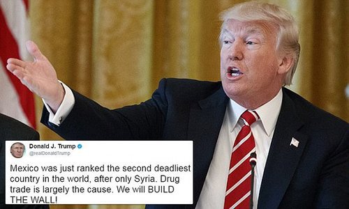 Recently, Trump tweeted, “Mexico was just ranked the second deadliest country in the world, after only Syria. Drug trade is largely the cause. We will BUILD THE WALL!”