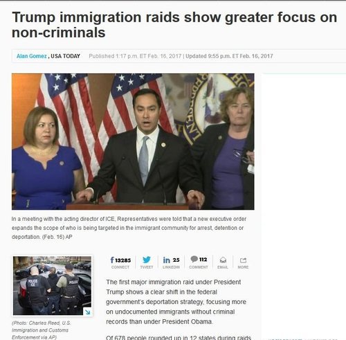 As CIS's Mark Krikorian noted in USA Today, all that is happening is a “return to normal enforcement practices” where those who have committed crimes other than illegal immigration are still the priority, but “ordinary lawbreakers are no longer exempt from enforcement”. [Trump immigration raids show greater focus on non-criminals, by Alan Gomez, USA Today, February 16, 2017].