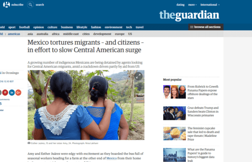 …about half-way there, [Mexican] immigration agents boarded the bus, and after checking all the passengers’ papers, ordered the three siblings to get off. The officials accused them of carrying false documents and lying about their nationality. Then they told the youngsters that they would be deported to Guatemala, a country none would have been able to place on a map. The baffled youngsters—who speak the Mayan language Tzeltal but very little Spanish—were transferred to an immigration holding centre in Queretero city [sic—should be spelled Queretaro].Blatant racial profiling! The immigration officials assumed the siblings were Guatemalan Indians, not Mexican Indians. The language barrier didn’t help.[Mexico tortures migrants—and citizens—in effort to slow Central American surge, by Nina Lakhani, The Guardian, April 4, 2016]