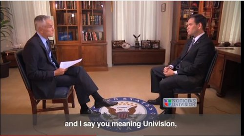 In an audio headline about the interview, Univision’s Maria Elena Salinas [Twitter] declared in Spanish “…en entrevista con Univisión, Marco Rubio dice que si llegara a la presidencia en algún momento, eliminaría DACA…” For you English-speaking folks, that would be translated as “in an interview with Univision, Marco Rubio says that if he arrives to the presidency at some point, he would eliminate DACA” [Univision Casts Rubio as ‘The Bad Guy’ by Yuri Perez, Newsbusters, April 16, 2015].