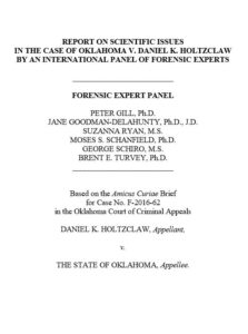Gieger was the original prosecutor in the defendant's case. The defendant's appeal argues that Gieger "repeatedly and flagrantly misrepresented" evidence at trial, including the forensic evidence and testimony of the OCPD crime lab analyst, Elaine Taylor. A report by six internationally renowned DNA scientists and experts released this summer highlighted Taylor's "flawed forensic science, including insufficient serological analysis and improper DNA testimony" in the case at hand. The scientists concluded that the defendant, former Oklahoma City police officer Daniel Holtzclaw, who is now serving 263 years for a bandwagon pile-on of sexual assault allegations, "was deprived of his due process right to a fair trial because the State misused DNA evidence" and stated that his "conviction should be overturned and he should be given a new trial."[PDF]