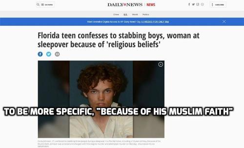 Except for the fact that Johnson ignored the FBI and continued his Islamic instigation online. After nearly a year of foot-dragging, the FBI gathered enough evidence to bring federal charges against Johnson for his social media terror threats. According to records released by the Jupiter Police Department, local officials were told the charges would be brought in the summer of 2017. But on the early morning of the jihad stabbings at Palm Beach Gardens last week, the FBI and U.S. Attorney's Office had yet to take action on a known radicalized threat who had menaced his family, his schoolmates and innocents abroad.