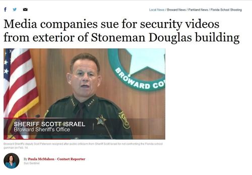 Feckless Broward County Sheriff Scott Israel and media-luvin' school Superintendent Robert Runcie [Email him] are defendants in an open records lawsuit filed Tuesday by the South Florida Sun Sentinel, the Miami Herald and CNN. The local officials claim that surveillance videos from cameras outside the school are completely exempt from sunshine laws because they would expose the district's security system plan; are part of an active criminal investigation; and involve an active internal affairs investigation of school resource officer/BSO Deputy Scot Petersonf, whom Israel notoriously threw under the bus last week.