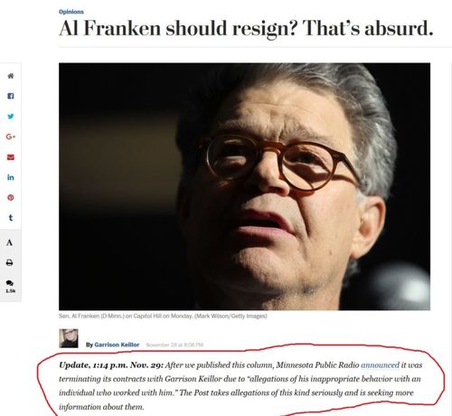 That same month, NPR launched an investigation of veteran Minnesota Public Radio host Garrison Keillor, creator of "A Prairie Home Companion." The liberal icon penned a column defending fellow sexual harassment suspect Sen. Al Franken, D-Minn., in late November; the next day, NPR fired him for inappropriate behavior involving at least one female co-worker. Keillor says the only incident he recalls involves inadvertently slipping his hand up the bare back of a "friend."