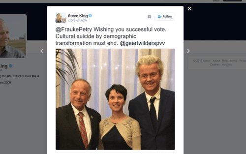 [Rep. Steve King is hanging out with the German far right and tweeting racist buzzword, September 26, 2016]