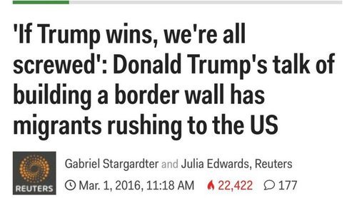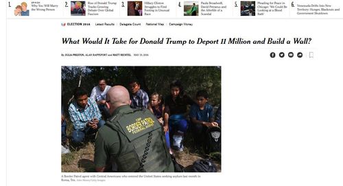“Mr. Trump has suggested he will flesh out his ideas in a forthcoming speech. But experts across many fields who have analyzed his plans so far warn that they would come at astronomical costs — whoever paid — and would in many ways defy the logic of science, engineering and law.”Where do they get these ideas? From bought and paid for think tanks.What Would It Take for Donald Trump to Deport 11 Million and Build a Wall? By Julia Preston, Alan Rappeport and Matt Richtel, NYT, May 19, 2016