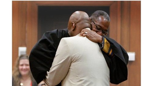 The background image (a black "drug court" Judge hugging a black dealer) from the official White House web page on Drug Policy Reform.