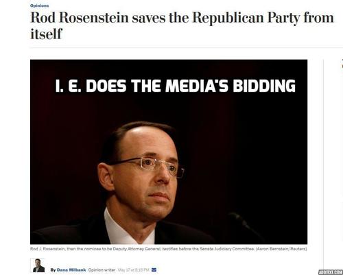 Rosenstein had gone over to the dark side. He had, it was said, on Trump's orders, put the hit on Comey. Now, by siccing a special counsel on the president himself, Rosenstein is restored to the good graces of this city. Rosenstein just turned in his black hat for a white hat.