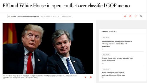 This week, however, FBI Director Chris Wray and Deputy Attorney General Rod Rosenstein slipped into the White House to plead with Kelly to keep the Republican memo secret. Wednesday, both went public to warn the White House against doing what Trump said he was going to do.