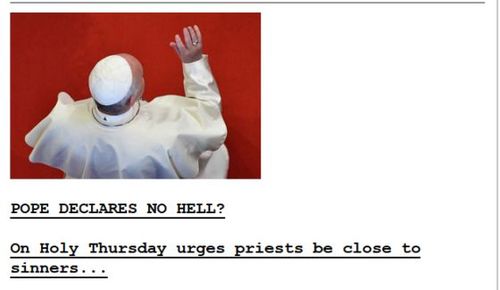 Bad souls "are not punished," Pope Francis is quoted, "those who do not repent and cannot therefore be forgiven disappear. There is no hell, there is the disappearance of sinful souls."